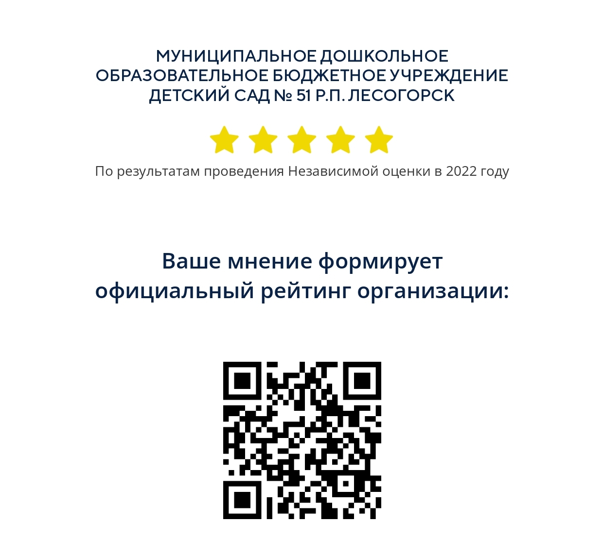 Вы можете оставить мнение о дошкольной организации на Официальном сайте для размещения информации о государственных (муниципальных) учреждениях (ГМУ, https://bus.gov.ru), чтобы оценить условия осуществления образовательной деятельности.